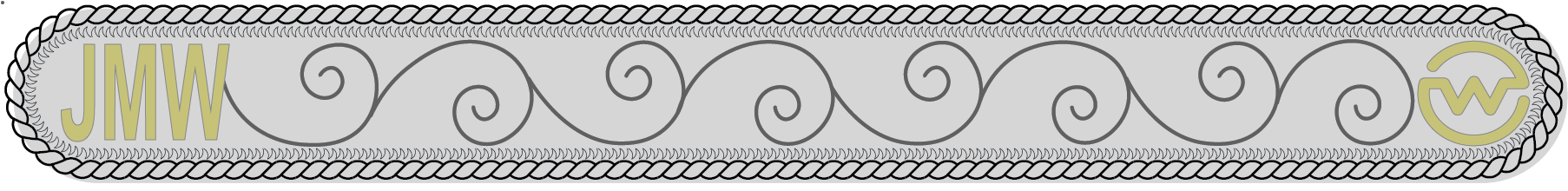 Custom solid sterling cuff bracelet for 7" wrist, with small rope border around edge. Brass initials and brand on either end. Bright cut scroll engraving on top, underside darkened with custom lettering. Expected delivery the first week of January.